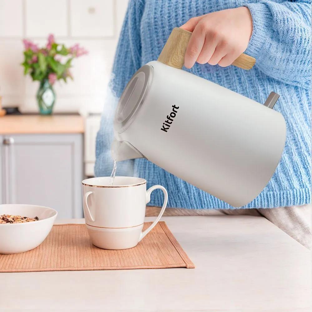 Электрический чайник Kitfort КТ-6794 (2200 Вт/1,7 л /нержавеющая сталь, дерево/белый, дерево) - Интернет-магазин ОЛИМП: бытовая техника, электроника, товары для дома и др.