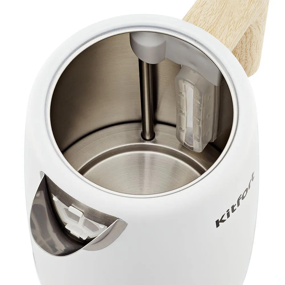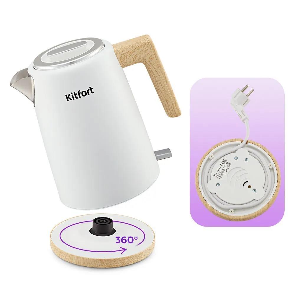 Электрический чайник Kitfort КТ-6794 (2200 Вт/1,7 л /нержавеющая сталь, дерево/белый, дерево)