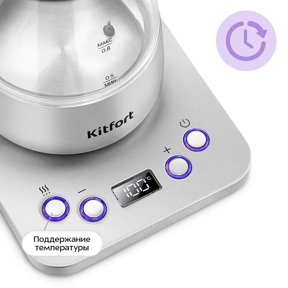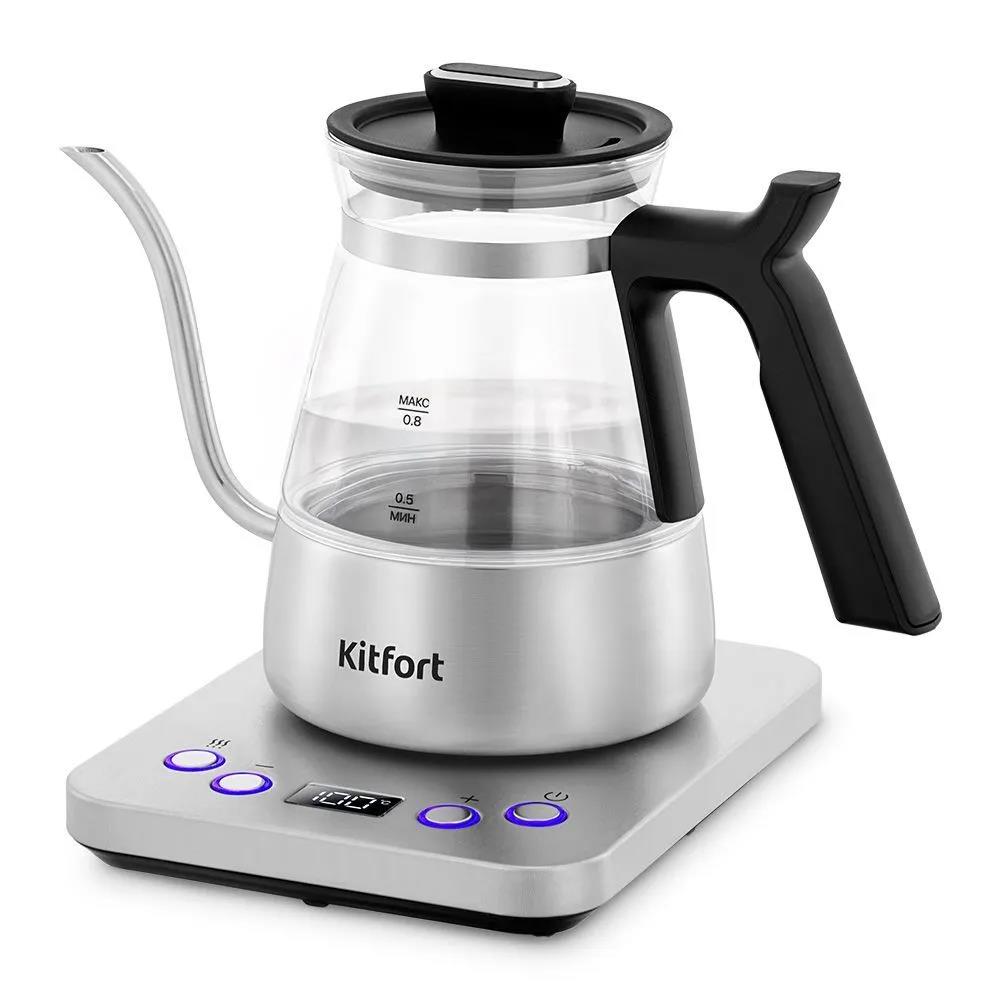 Электрический чайник Kitfort КТ-8707 для варки кофе (1300 Вт/0,8 л /стекло, пластик, нержавеющая сталь/прозрачный, черный, серебристый) - Интернет-магазин ОЛИМП: бытовая техника, электроника, товары для дома и др.
