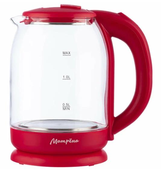 Электрический чайник МАТРЁНА MA-007 (1500 Вт/1,8 л /стекло, пластик/прозрачный, вишневый) - Интернет-магазин ОЛИМП: бытовая техника, электроника, товары для дома и др.