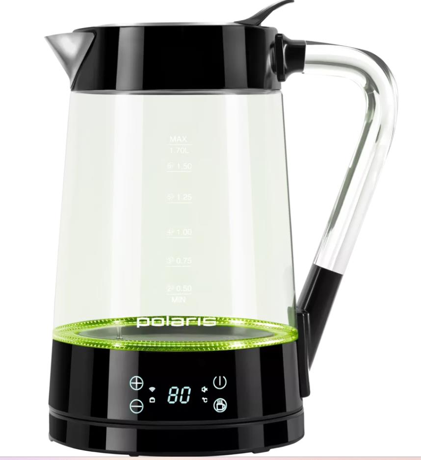Электрический чайник Polaris PWK 1715CGLD WIFI IQ Home (2200 Вт/1,7 л /стекло, пластик/прозрачный, черный) - Интернет-магазин ОЛИМП: бытовая техника, электроника, товары для дома и др.