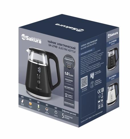 Электрический чайник Sakura SA-2748DBK (1100 Вт/1 л /стекло, металл, пластик/черный) - Интернет-магазин ОЛИМП: бытовая техника, электроника, товары для дома и др.