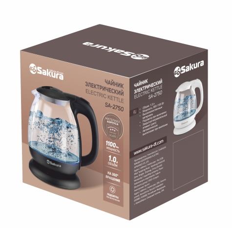 Электрический чайник Sakura SA-2750BK (1100 Вт/1 л /стекло/прозрачный, черный)
