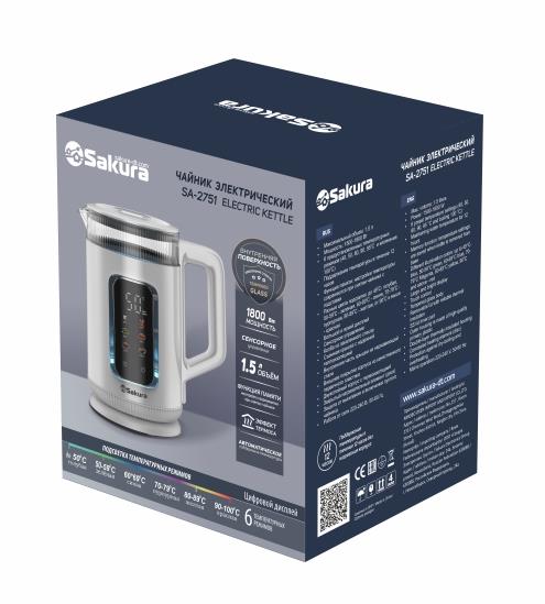 Электрический чайник Sakura SA-2751DW (1800 Вт/1,5 л /стекло, металл, пластик/белый) - Интернет-магазин ОЛИМП: бытовая техника, электроника, товары для дома и др.