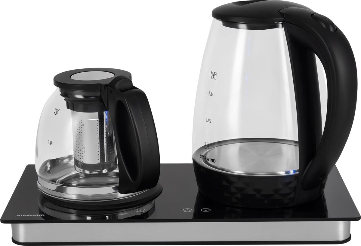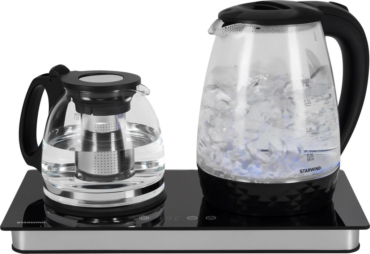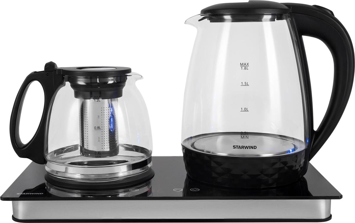 Электрический чайник STARWIND SKG4044 (1800 Вт/1,8 л /стекло/прозрачный, черный)