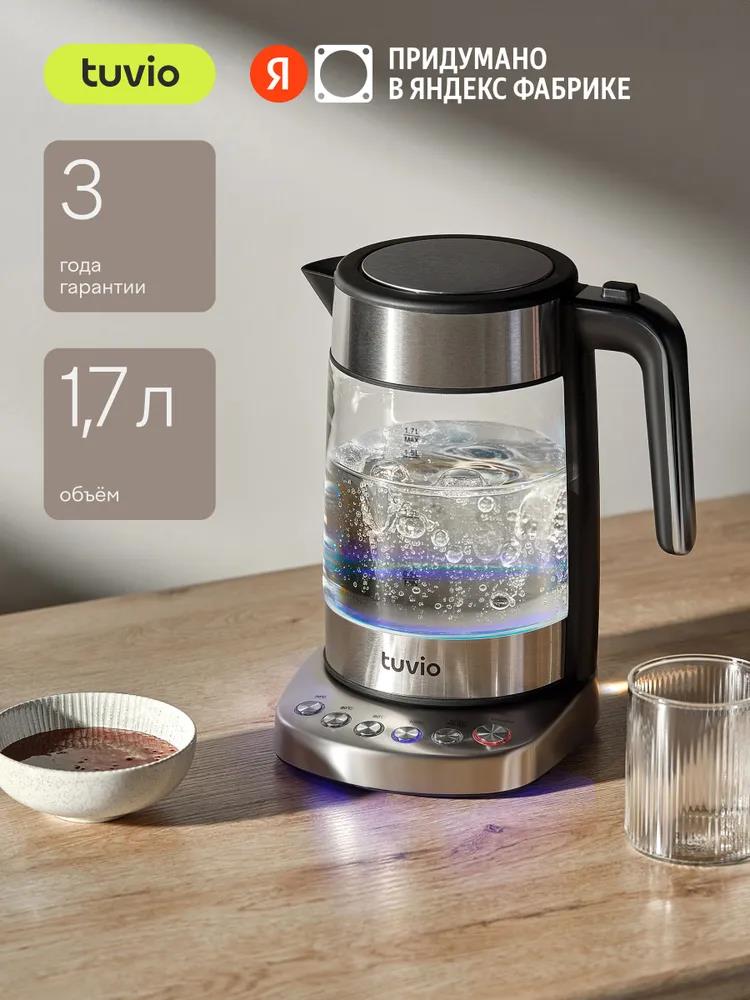 Электрический чайник Tuvio TUK217H1 (2200 Вт/1,7 л /стекло, пластик/прозрачный, черный, серебристый) - Интернет-магазин ОЛИМП: бытовая техника, электроника, товары для дома и др.