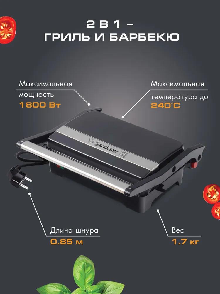 Электрический гриль Endever Grillmaster 119, черный/металлик, 1800 Вт - Интернет-магазин ОЛИМП: бытовая техника, электроника, товары для дома и др.