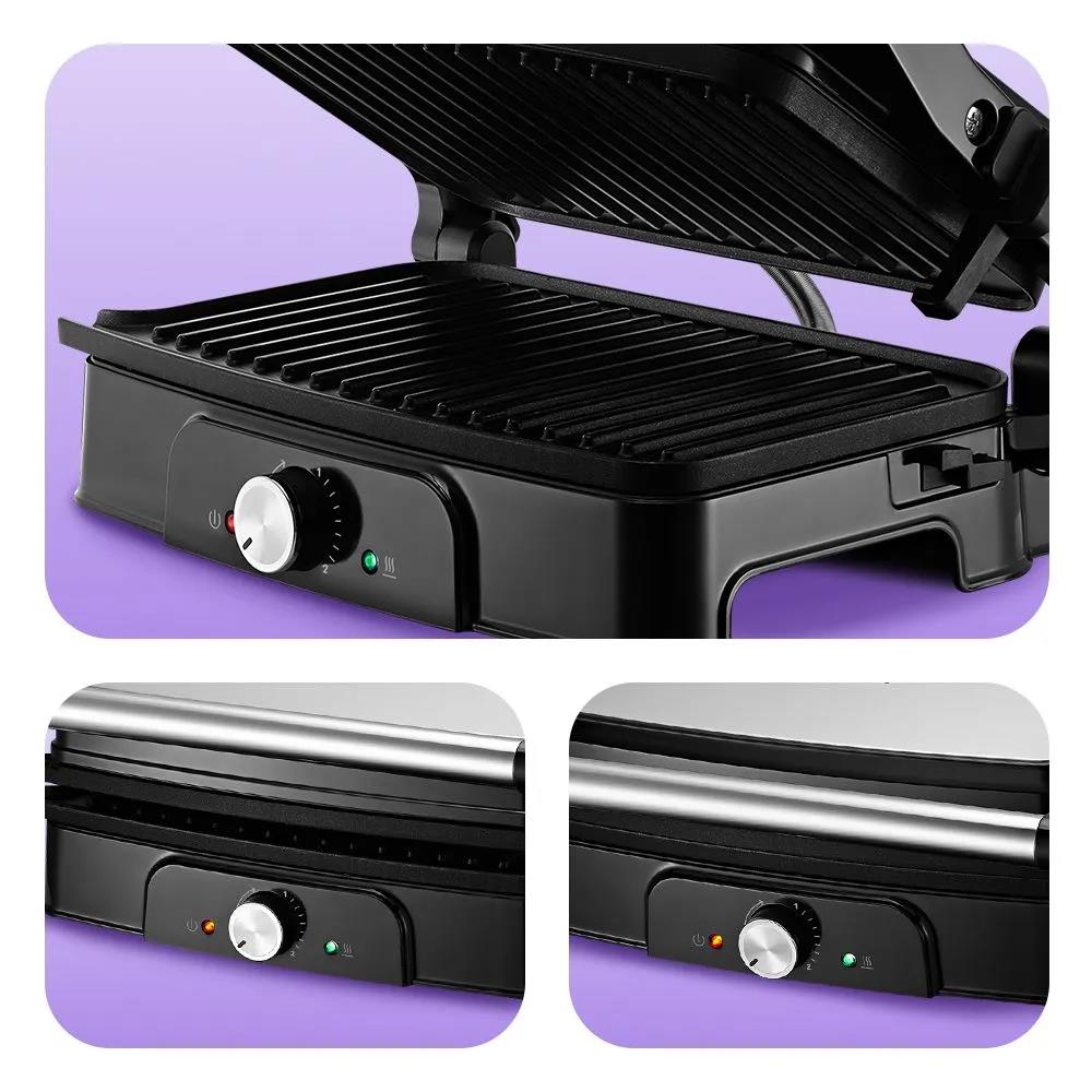 Электрогриль КТ-1659 предназначен для приготовления мяса, рыбы, овощей, сосисок, бутербродов, сэндвичей, гренок, тостов! Высокая t способствует быстрому приготовлению продуктов, а ребристая поверхность – появлению на них характерного «полосатого» рисунка.