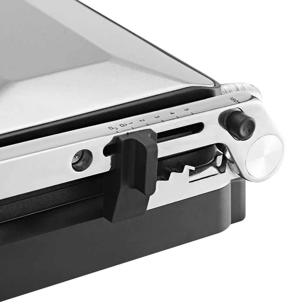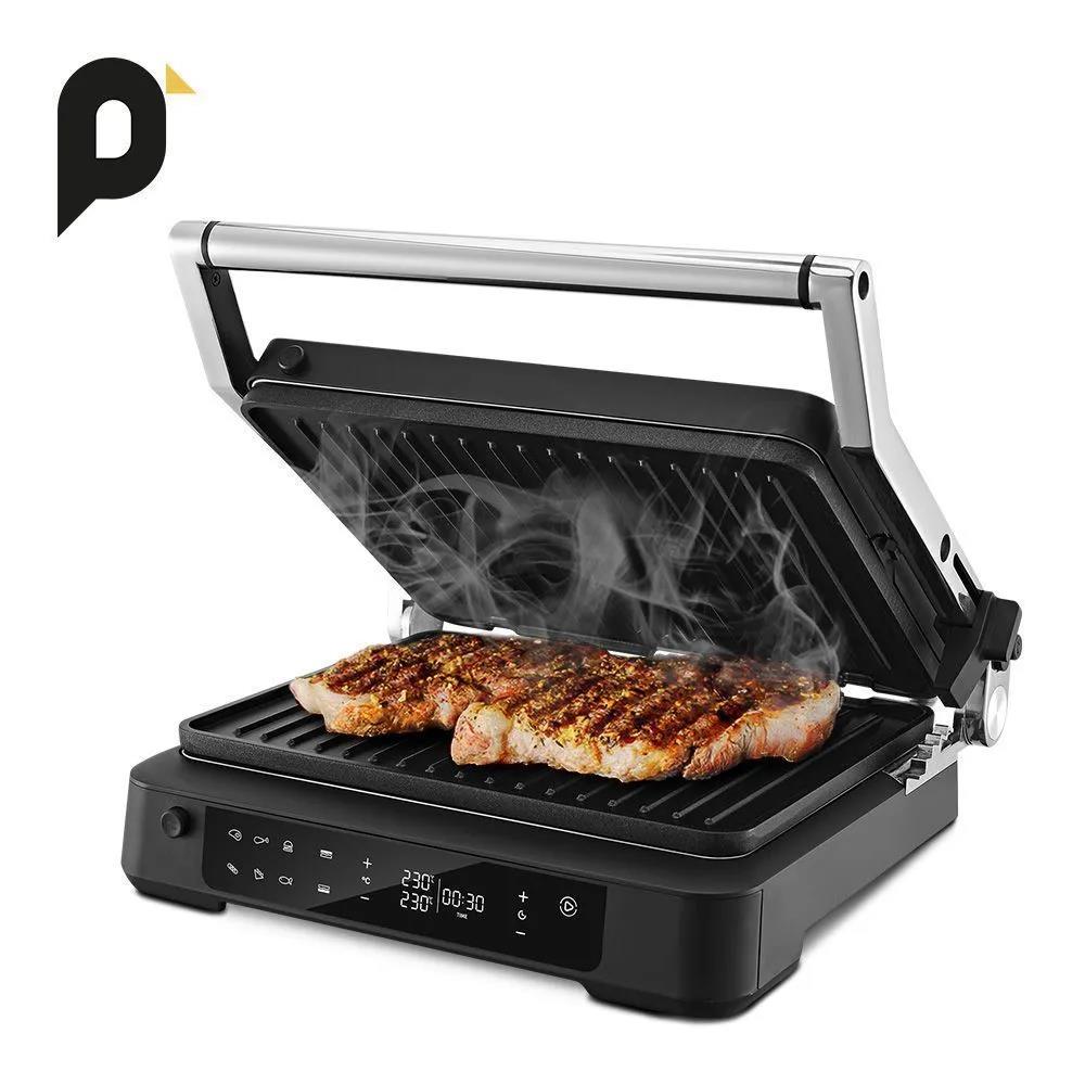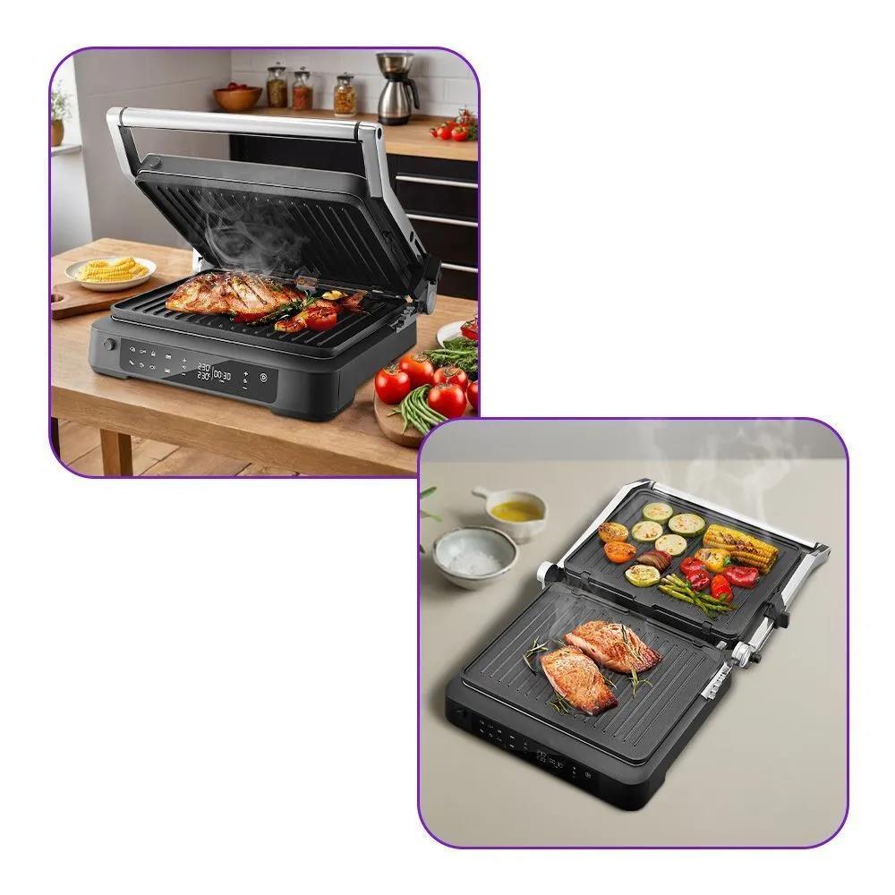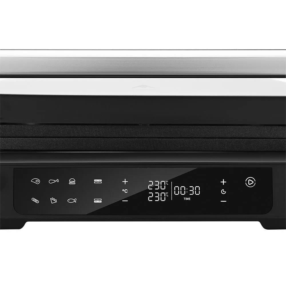 Прибор оснащён панелью управления, с помощью которой вы сможете установить желаемую температуру приготовления (для каждой панели можно установить свою температуру), время таймера, а также включить приготовление в одной из 6 предусмотренных режимов.