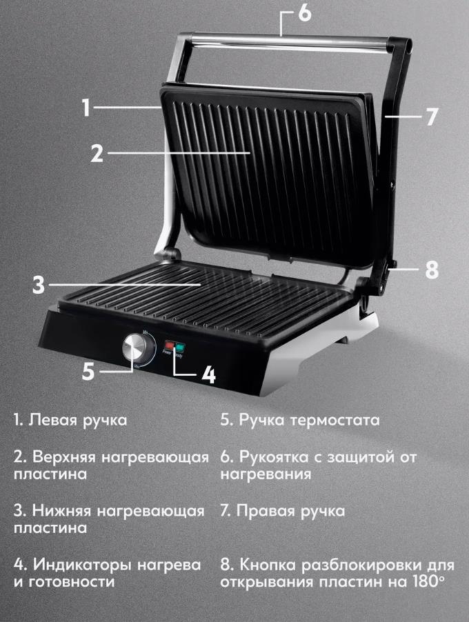 Электрический гриль Oasis GR-1N нержавеющая сталь, чёрный, 2200 Вт - Интернет-магазин ОЛИМП: бытовая техника, электроника, товары для дома и др.