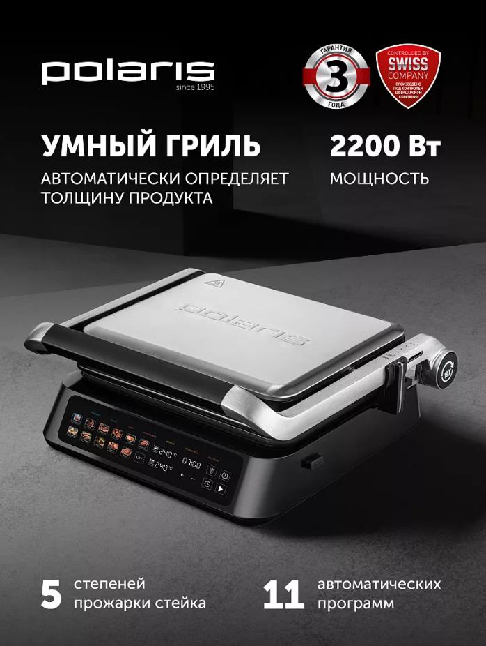 Электрический гриль Polaris PGP 3018 2000Вт серебристый/черный, 2000 Вт - Интернет-магазин ОЛИМП: бытовая техника, электроника, товары для дома и др.