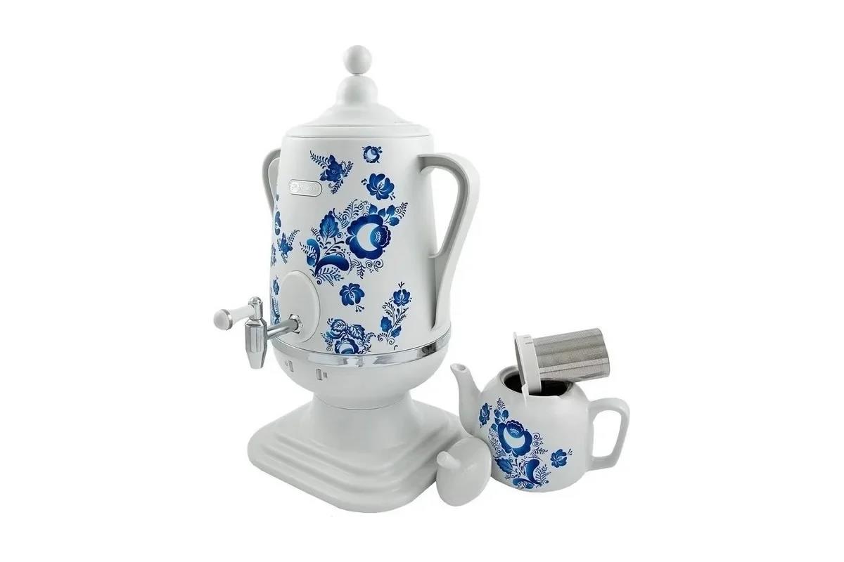 Электрический самовар Добрыня DO-415 ГЖЕЛЬ (4 л /1850 Вт /белый) - Интернет-магазин ОЛИМП: бытовая техника, электроника, товары для дома и др.