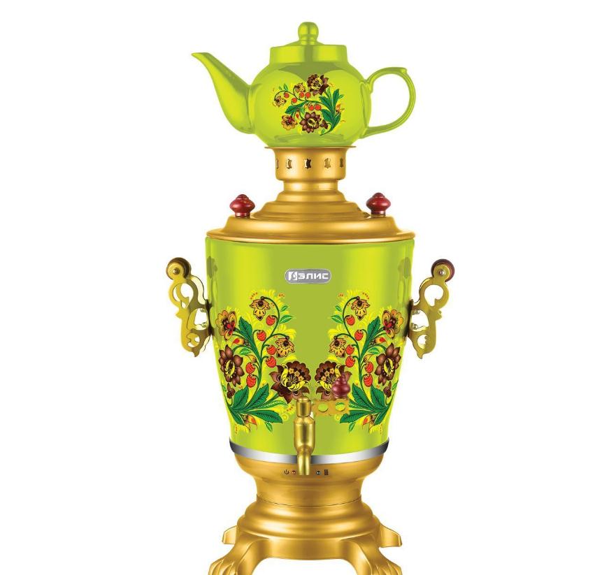 Электрический самовар Элис ЭЛ-4023 (4 л /2200 Вт /зеленый, золотистый)