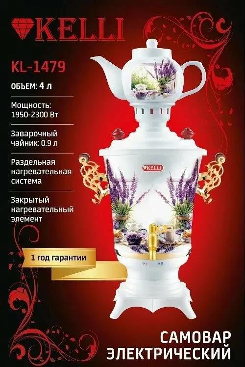 Электрический самовар Kelli KL-1479 (4 л /2200 Вт /белый, фиолетовый)
