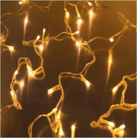 Светодиодная гирлянда в виде свисающих нитей с жёлтыми светодиодами поможет создать праздничную, красочную атмосферу. Она полностью по всей длине покрывает среднее окно или дверной проём. Имеется контроллер, 8 режимов свечения гирлянды. Переключаются с помощью одной кнопки на контроллере.