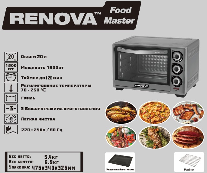 Электропечь Renova MO-20GTS1 (20 л /1500 Вт /серый) - Интернет-магазин ОЛИМП: бытовая техника, электроника, товары для дома и др.