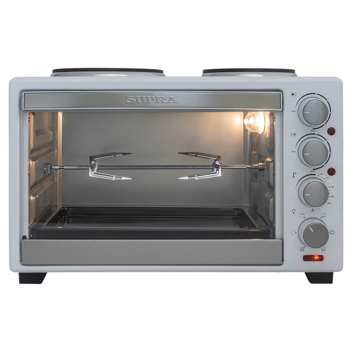 Электропечь SUPRA MTS-3340 — это компактная настольная мини-печь мощностью 1800 Вт, оснащенная конфорками мощностью 1000 Вт и 600 Вт. Устройство обеспечивает диапазон температур от 100 до 250 C, позволяя запекать, жарить и разогревать блюда. Подходит для небольших кухонь, дач или общежитий, предлагая функциональность полноценной плиты в миниатюрном формате.