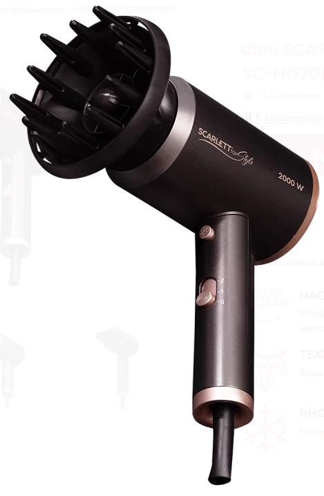 Фен Scarlett SC-HD70I52 (2000 Вт /коричневый) - Интернет-магазин ОЛИМП: бытовая техника, электроника, товары для дома и др.