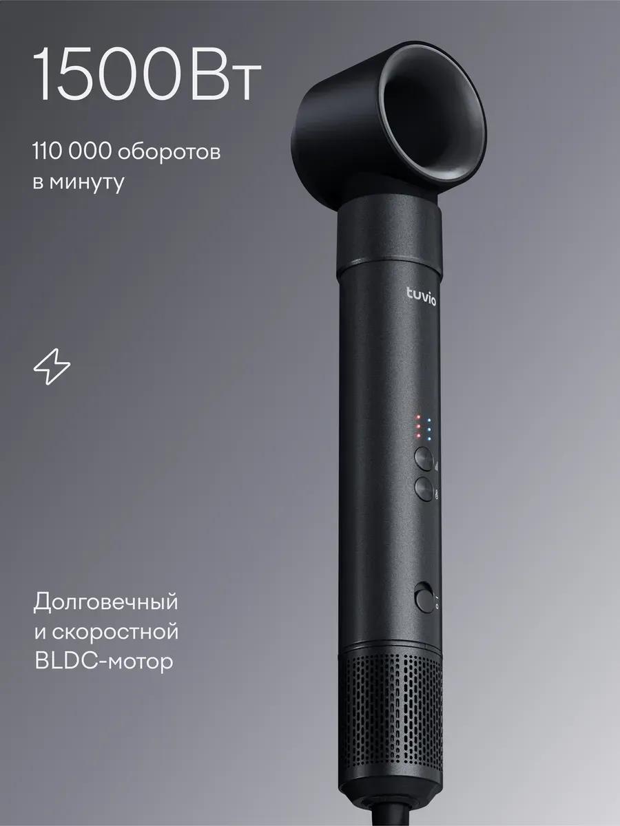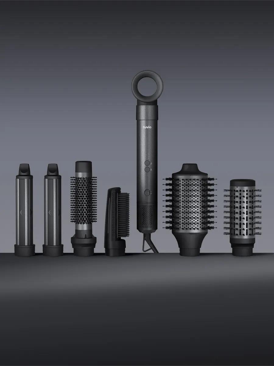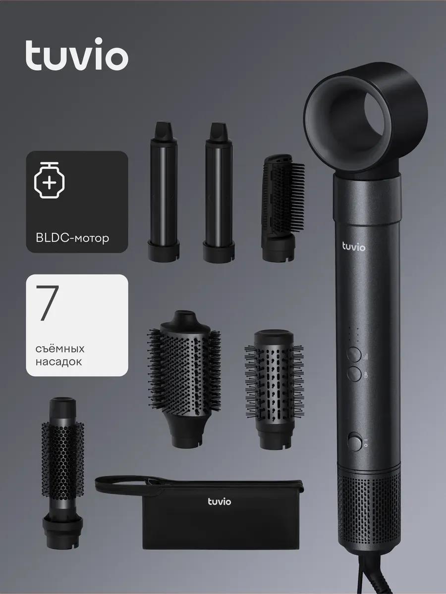 Фен-щетка Tuvio HBI1412, 7 насадок, сумка для хранения (1500 Вт /темный металл)