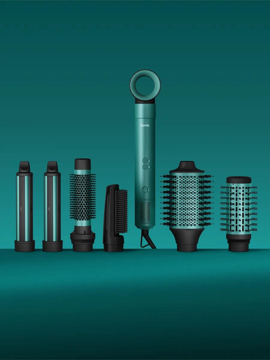 Tuvio — это бренд удобной техники, придуманный в Яндекс Фабрике. Фен-щётка Tuvio HBI1413 из новой цветной линейки — это стайлер с комплектом съёмных насадок, созданный для разных типов волос. Мощный — 1500 Вт — со скоростным и долговечным BLDC-мотором. Фен-стайлер быстро сушит и укладывает даже густые волосы. Лёгко и просто управляется 2 кнопками. Работает на 3 скоростях и 3 температурных режимах и легко переключается между горячим и холодным воздухом. Ионизация заботится о здоровье и красоте волос в процессе укладки, защищает от повреждений, сохраняет их гладкость и блеск. В комплекте со стайлером — 7 съёмных насадок для разных укладок: от бережного выпрямления до завивки локонов. Можно экспериментировать с волосами и менять образ по настроению. Фен-щётку удобно хранить в шкафу или подвешивать за специальную петлю. И держать в руках под любым углом — для этого есть вращающийся шнур.