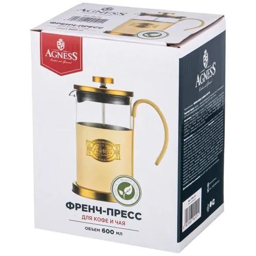 Френч-пресс AGNESS 894-101 PARADISE, 600 мл,золотистый, бежевый