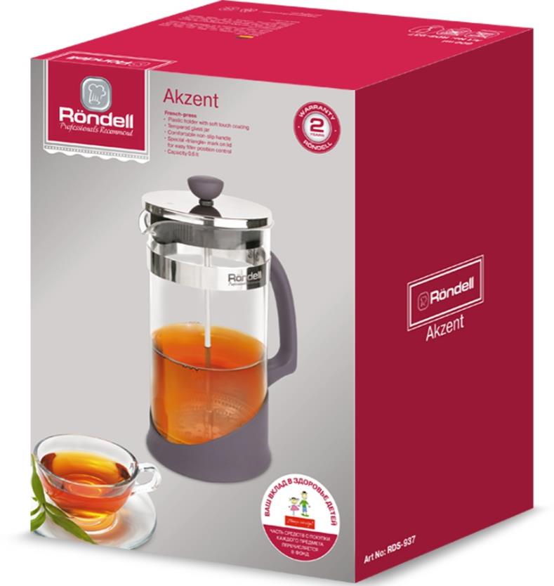 Френч-пресс Rondell Akzent RDS-937 , 600 мл,фиолетовый - Интернет-магазин ОЛИМП: бытовая техника, электроника, товары для дома и др.