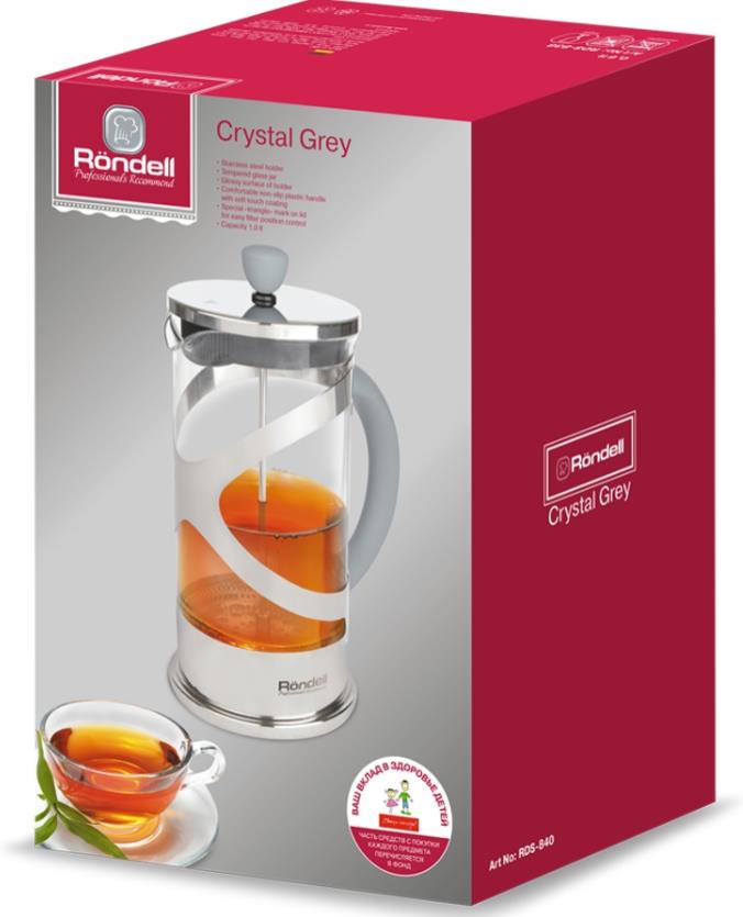 Френч-пресс Rondell Crystal Grey RDS-840, 1000 мл,серый - Интернет-магазин ОЛИМП: бытовая техника, электроника, товары для дома и др.