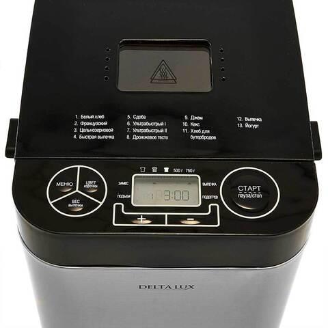 Хлебопечь Delta LUX DL-8008B поможет получить в домашних условиях прекрасный ароматный хлеб, в качестве которого владелец будет уверен благодаря тому, что лично подбирал для него ингредиенты. Прибор выполняет все необходимые операции: замешивает тесто, дает расстояться, при необходимости обминает время от времени, чтобы структура хлеба была однородной, выпекает. В Delta LUX DL-8008B можно получить буханку весом до 750 г. Пользователь имеет возможность выбрать даже цвет корочки. Хлебопечь оснащена 13 программами для получения разных видов хлеба, выпечки, йогурта и джема. Прибор можно также использовать для замеса и расстойки теста для последующей выпечки в духовке (для подового хлеба, пирогов, ватрушек и других изделий). Форма снабжена антипригарным покрытием, что облегчает уход за ней.
