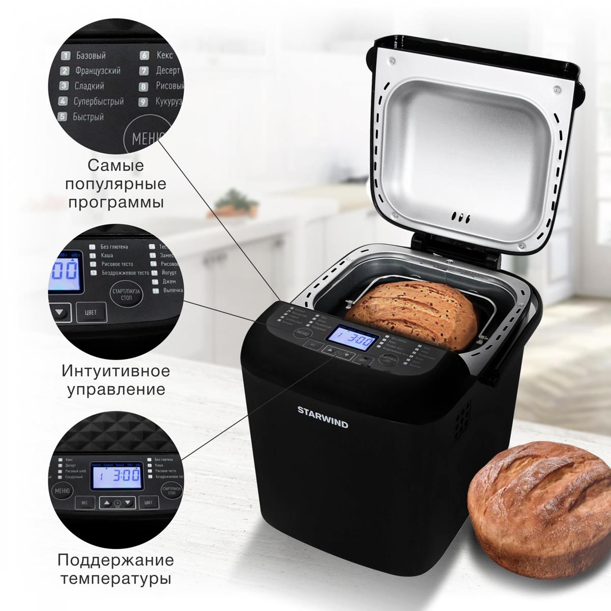 Хлебопечь STARWIND SBM1083 (черный) - Интернет-магазин ОЛИМП: бытовая техника, электроника, товары для дома и др.