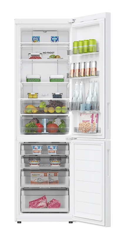 HAIER C2F620CWU1 — двухкамерный холодильник высотой 199,8 см. Вместительное (278 л) холодильное отделение позволяет хранить сразу много продуктов — это понравится большим семьям или тем, кто любит готовить. Для максимально качественного и длительного хранения продуктов здесь реализована технология антибактериальной защиты T.ABT, в которой используются свойства природного минерала турмалина — воздух в холодильнике ионизируется, количество бактерий и неприятных запахов благодаря этому минимизируется. Контейнер 0º Zone специально создан для хранения охлаждённого мяса, морепродуктов, сыров и различных деликатесов — в нём можно изменять влажность, а температура всегда около 0 градусов. Овощи и фрукты удобно хранить в выдвижном контейнере с разделителем пространства внутри. Многопоточное охлаждение MultiFlow равномерно распределяет холодный воздух — нет разницы температуры в нижней и верхней частях отделения. Современное светодиодное освещение яркое, долговечное и экономичное.