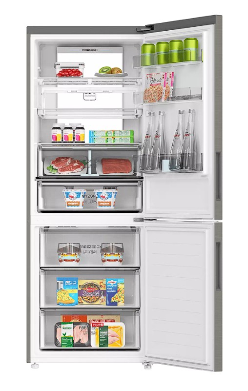 Классический двухкамерный холодильник с технологией Total No Frost — нет наледи в отделениях, никакого ручного размораживания. Отличный обзор — видно все продукты, благодаря светодиодной колонне Tower LED. Специально разработанная двойная складная винная полка обеспечивает максимальное удобство и вариативность хранения. В контейнере 0° Zone качественно сохраняются морепродукты, мясные деликатесы, сыры и молочные продукты, а мембранная технология контроля влажности HCS улучшает условия хранения овощей и фруктов.
