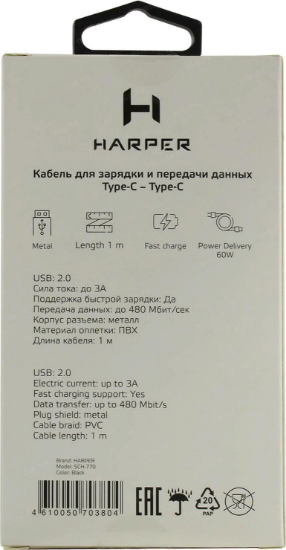 Кабель соединительный Harper SCH-770 USB-C USB Type-C черный 1 м - Интернет-магазин ОЛИМП: бытовая техника, электроника, товары для дома и др.