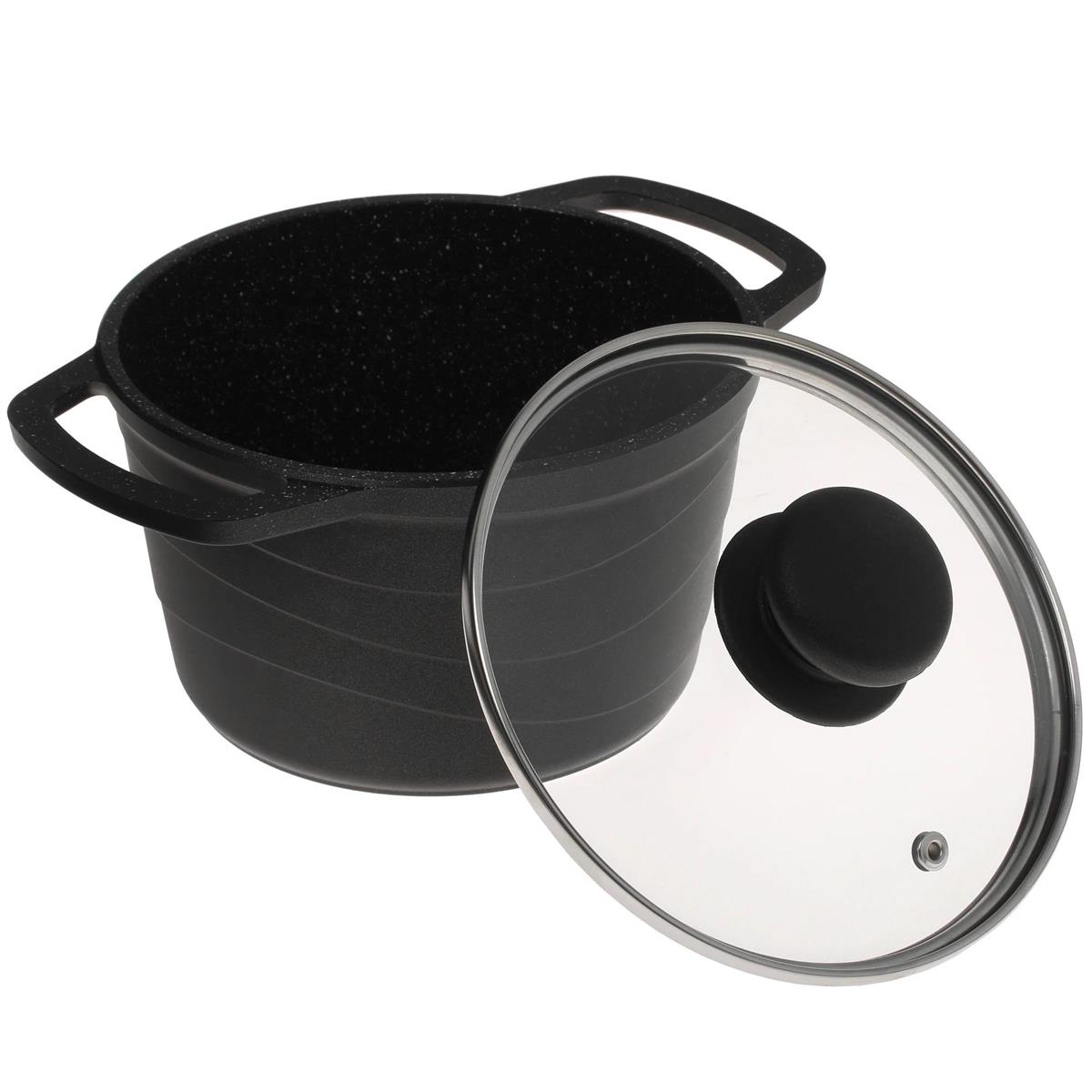 Кастрюля НЕВА МЕТАЛЛ ПОСУДА 186615 со стекл. крышкой 1,5л "Каменная" Черный гранит (1,5 л )