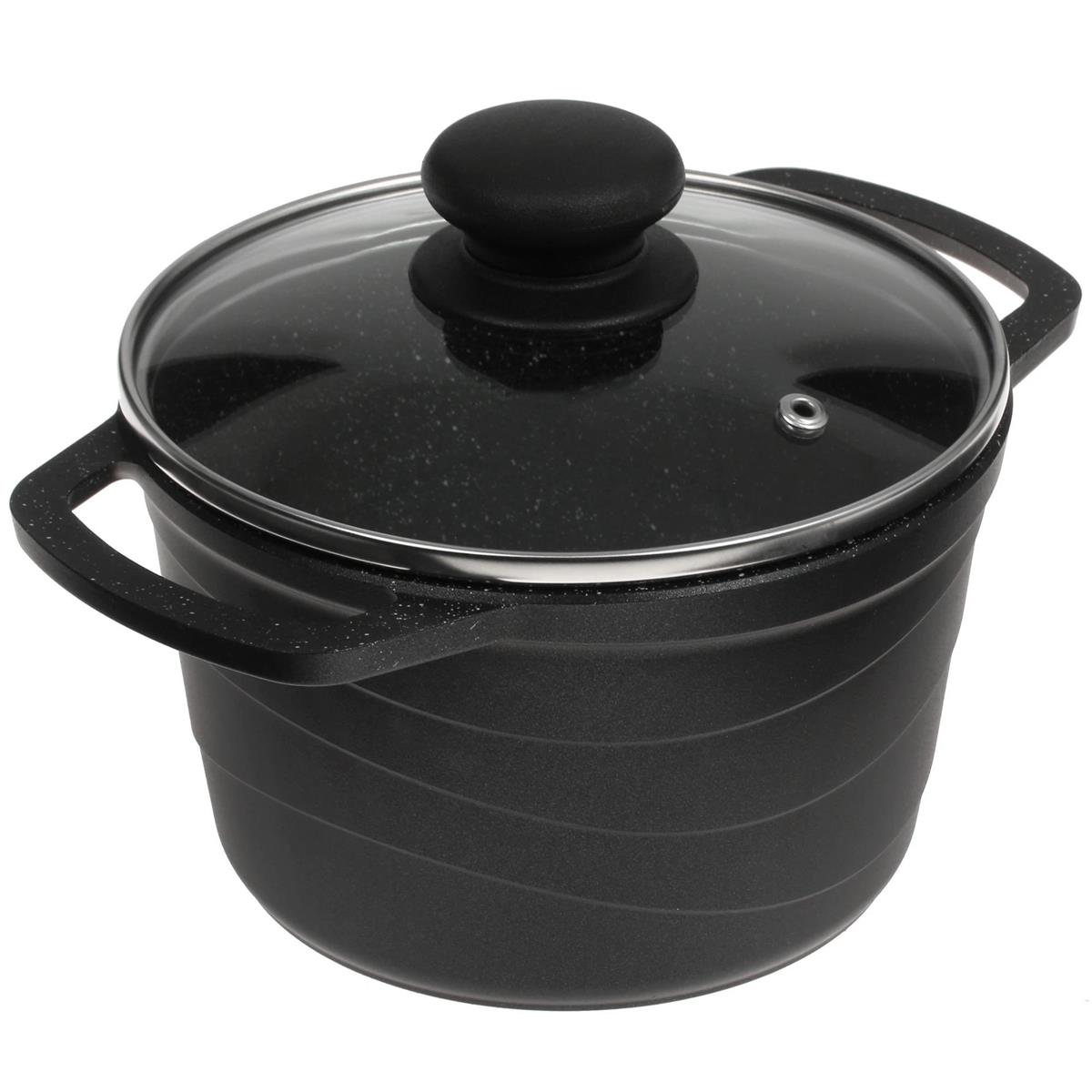 Кастрюля НЕВА МЕТАЛЛ ПОСУДА 186615 со стекл. крышкой 1,5л "Каменная" Черный гранит (1,5 л ) - Интернет-магазин ОЛИМП: бытовая техника, электроника, товары для дома и др.