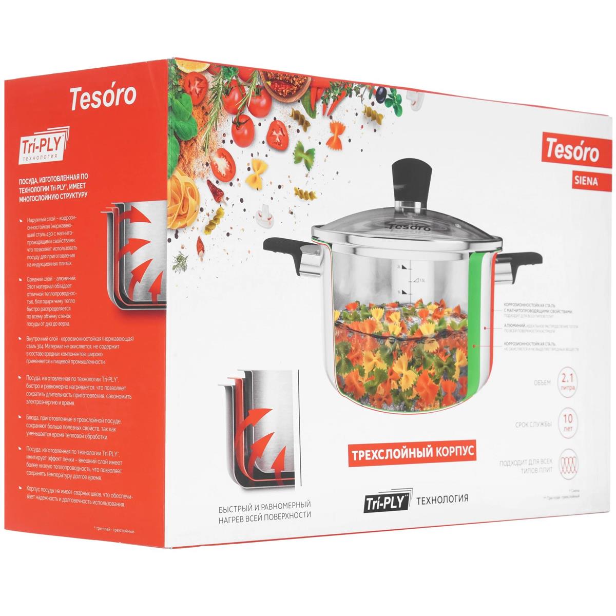 Кастрюля Tesoro Siena КС421 2,1 л (нерж. Сталь + стекл крышка) (2,1 л ) - Интернет-магазин ОЛИМП: бытовая техника, электроника, товары для дома и др.