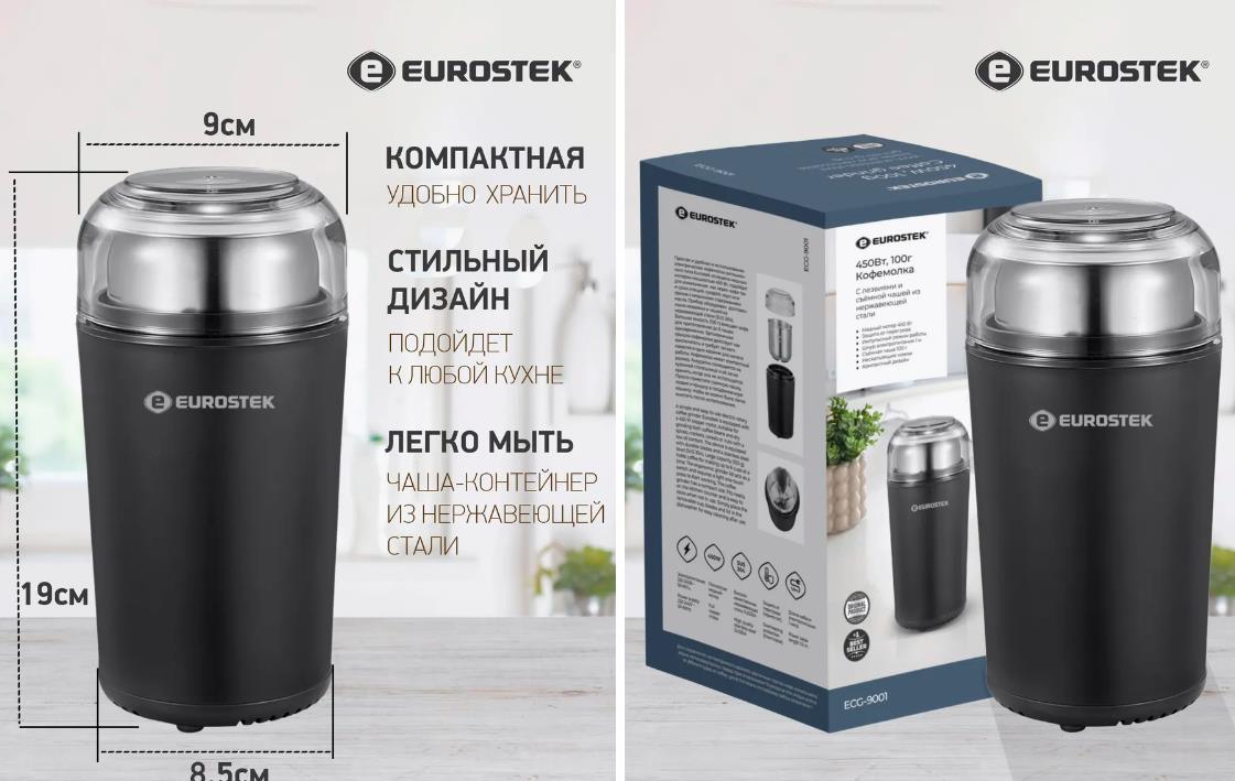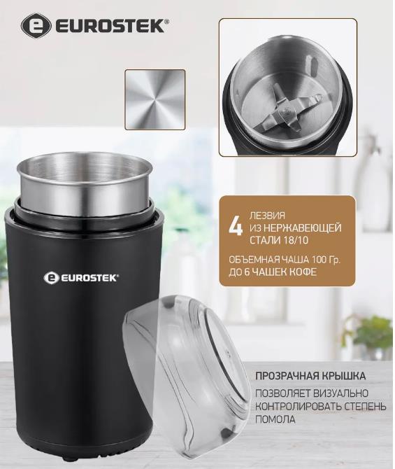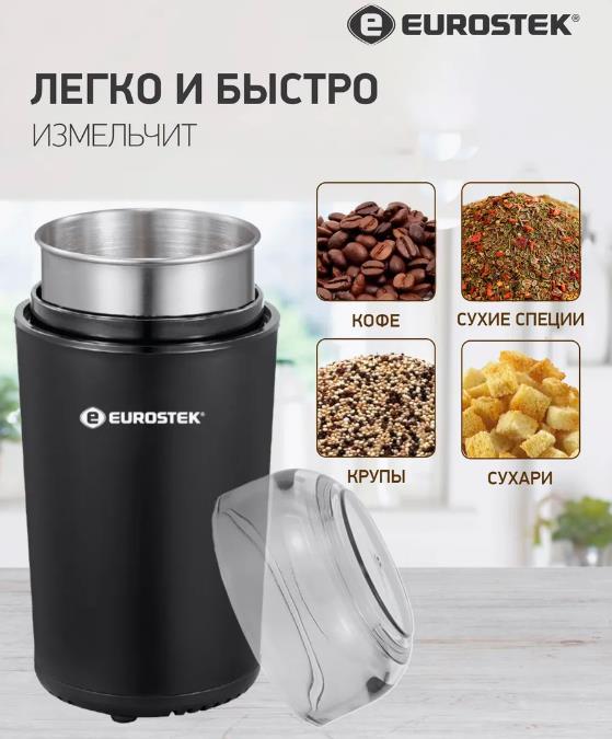Кофемолка Eurostek ECG-9001 (100 г/450 Вт /черный) - Интернет-магазин ОЛИМП: бытовая техника, электроника, товары для дома и др.