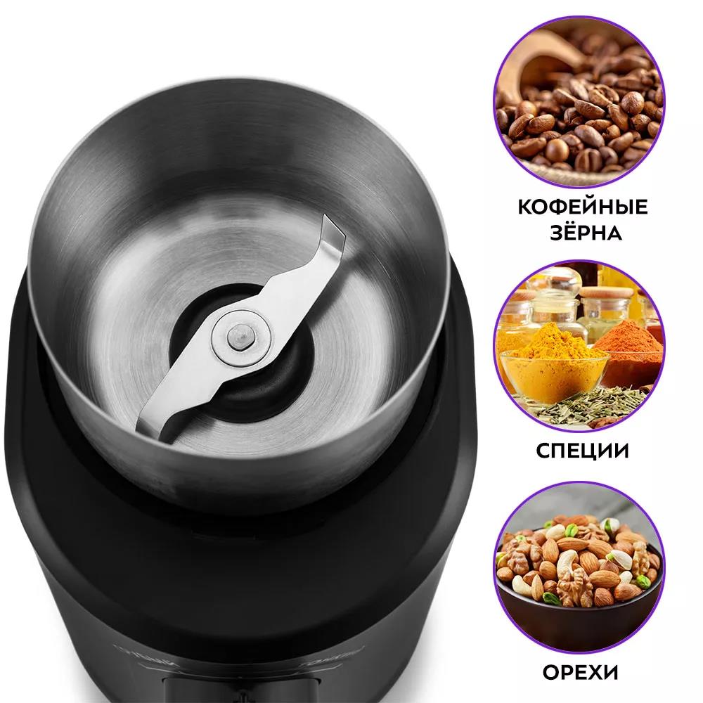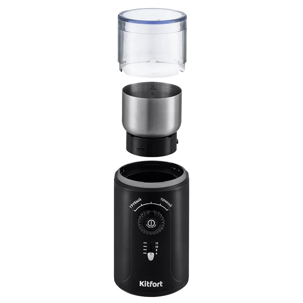 Кофемолка Kitfort KT-747 200Вт сист.помол.:ротац.нож (/200 Вт /серебристый, черный) - Интернет-магазин ОЛИМП: бытовая техника, электроника, товары для дома и др.