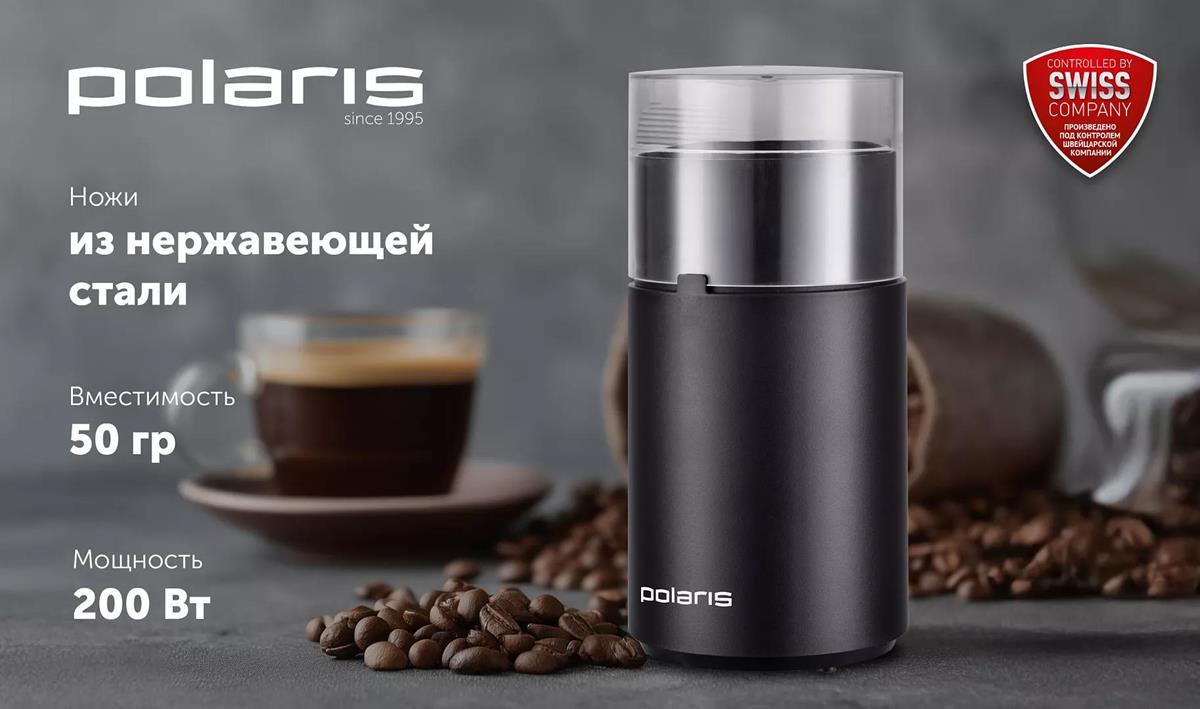 Кофемолка Polaris PCG 2015 200Вт сист.помол.:ротац.нож вместим.:50гр (50 г/200 Вт /черный) - Интернет-магазин ОЛИМП: бытовая техника, электроника, товары для дома и др.