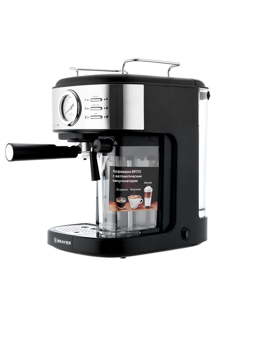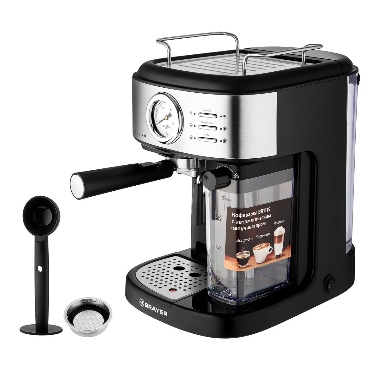 Кофеварка Brayer BR1115 черный, исп. кофе - молотый, 1.5 л, 1300 Вт, 15 Бар (рожковая/1,5 л /1300 Вт )