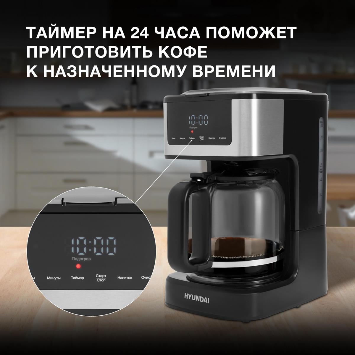Кофеварка Hyundai HYD-1212 черный/серебристый, исп. кофе - молотый, 1.8 л, 900 Вт. (капельная/1,8 л /900 Вт )