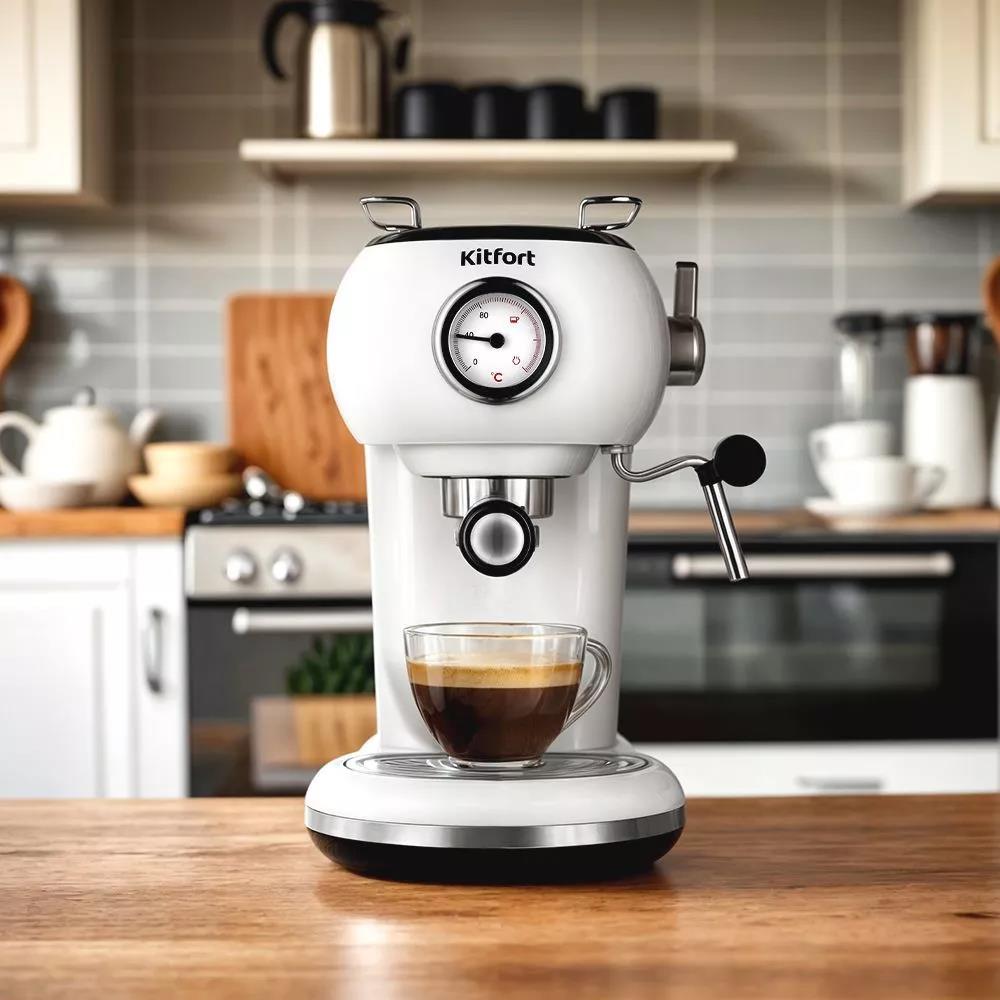 Кофеварка Kitfort КТ-7219 белый (рожковая//1100 Вт )