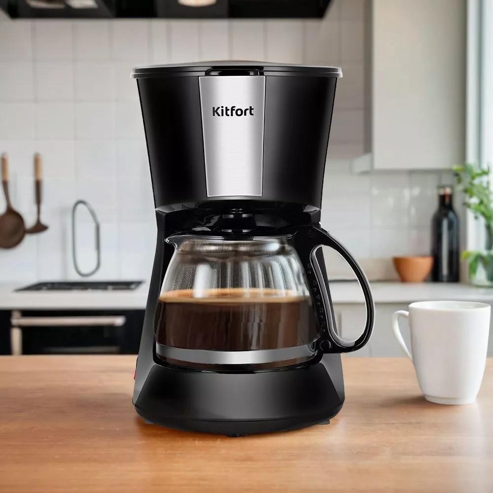 Кофеварка Kitfort КТ-7260 черный/нержавеющая сталь (капельная/0,6 л /550 Вт ) - Интернет-магазин ОЛИМП: бытовая техника, электроника, товары для дома и др.