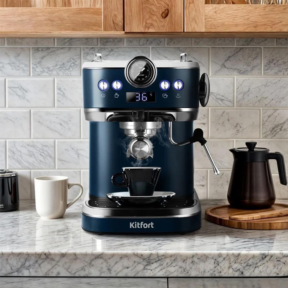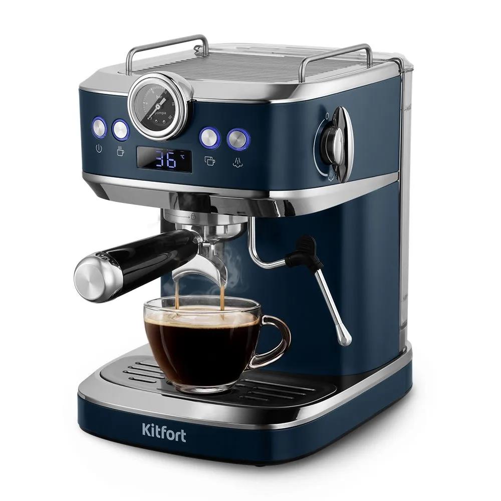 Кофеварка Kitfort КТ-7429 синий/нержавеющая сталь (рожковая//1360 Вт ) - Интернет-магазин ОЛИМП: бытовая техника, электроника, товары для дома и др.