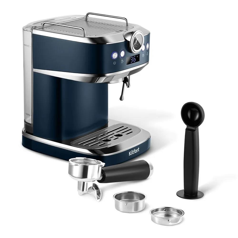 Кофеварка Kitfort КТ-7429 синий/нержавеющая сталь (рожковая//1360 Вт )