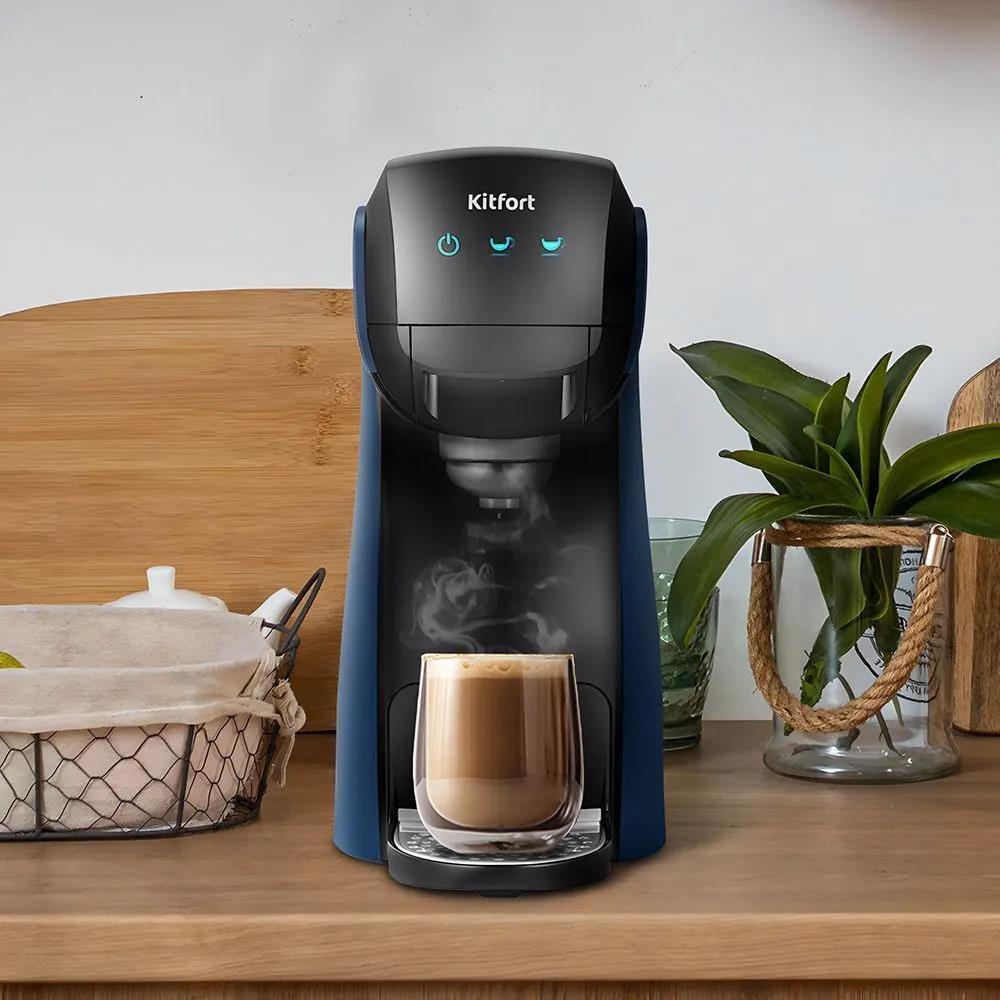 Кофеварка Kitfort КТ-7462 синий/черный (капсульная/0,85 л /1450 Вт ) - Интернет-магазин ОЛИМП: бытовая техника, электроника, товары для дома и др.