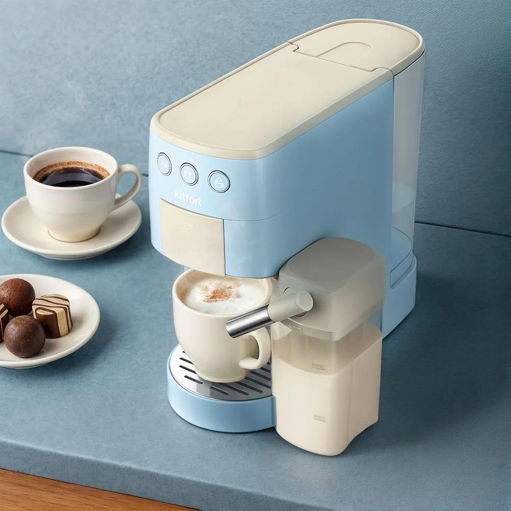Кофеварка Kitfort КТ-7466 голубой/белый (рожковая//1450 Вт ) - Интернет-магазин ОЛИМП: бытовая техника, электроника, товары для дома и др.
