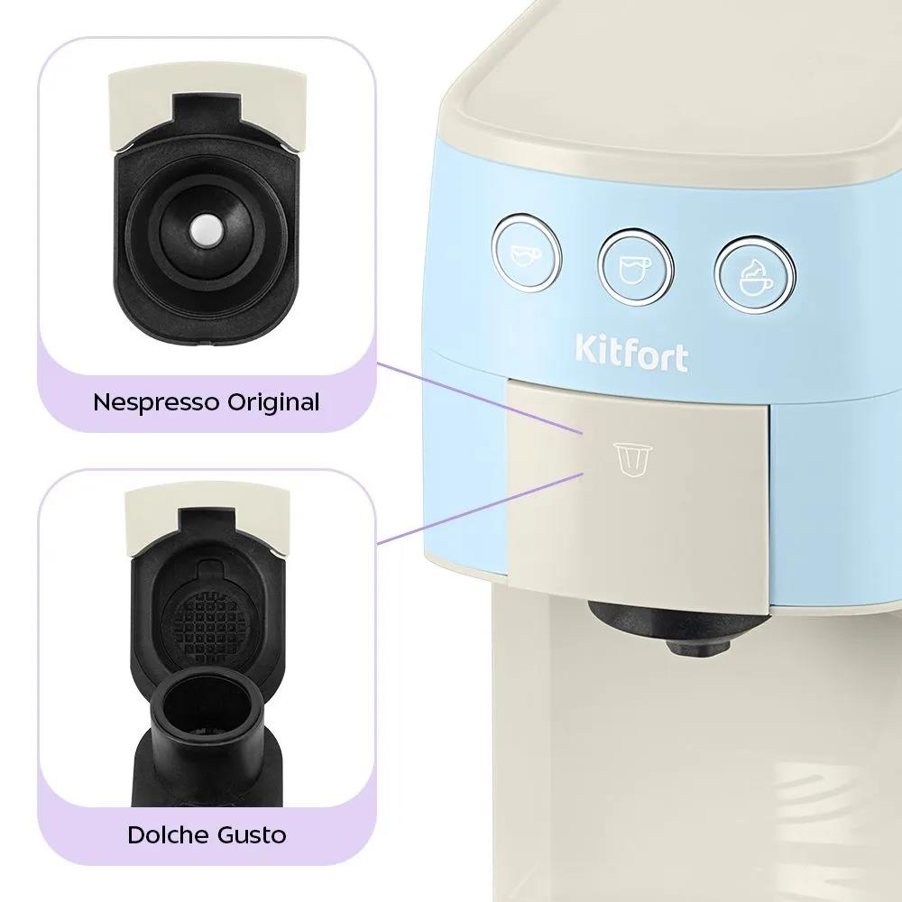 Кофеварка Kitfort КТ-7466 голубой/белый (рожковая//1450 Вт )
