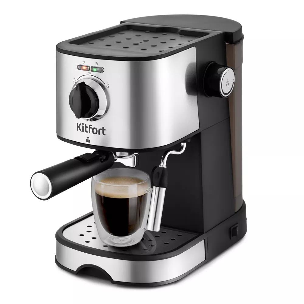 Кофеварка Kitfort KT-753 черный/нержавеющая сталь (рожковая//850 Вт )