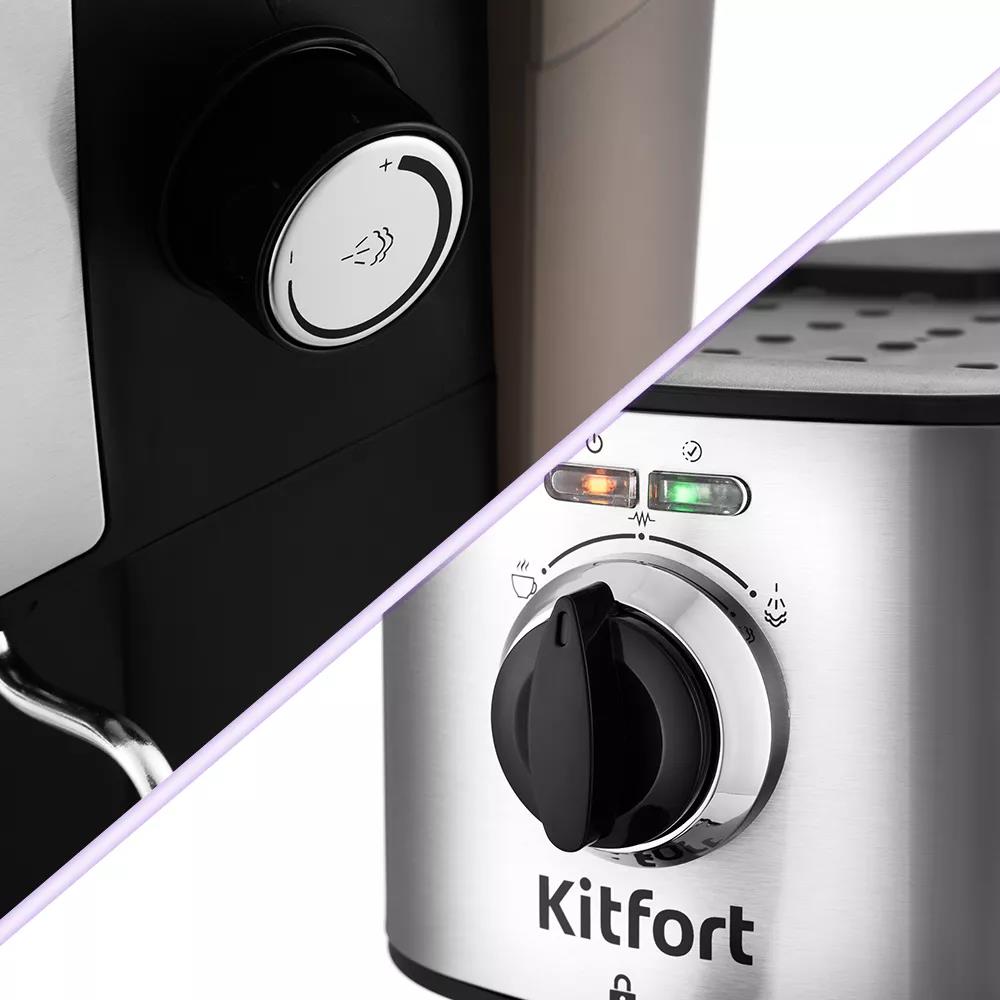 Кофеварка Kitfort KT-753 черный/нержавеющая сталь (рожковая//850 Вт ) - Интернет-магазин ОЛИМП: бытовая техника, электроника, товары для дома и др.