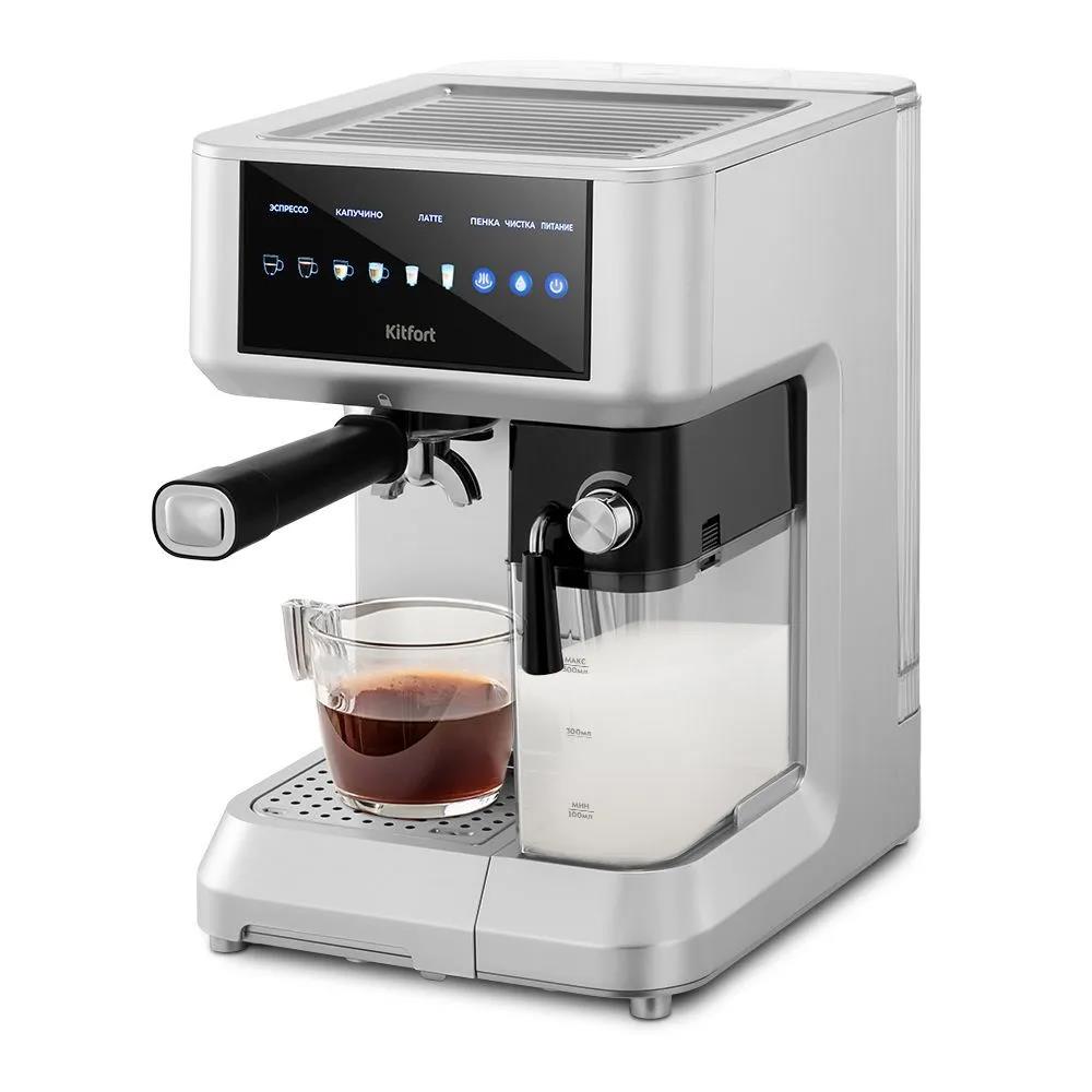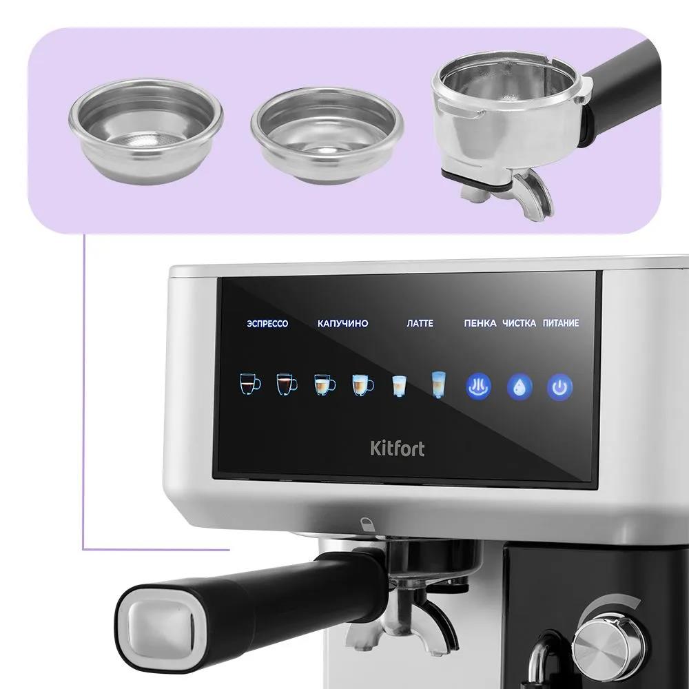 Кофеварка Kitfort КТ-7545 1350Вт серебристый/черный (рожковая/1,6 л /1350 Вт )